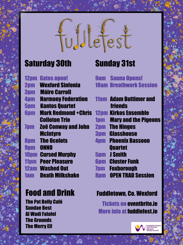 We are a music festival, nestled in the heart of rural Wexford. Presenting a complete mix of styles from leading Irish musicians performing classical and contemporary music, to trad sessions and singer-songwriters, intertwined with sonic installations and topped off with rock music for dancing the night away.